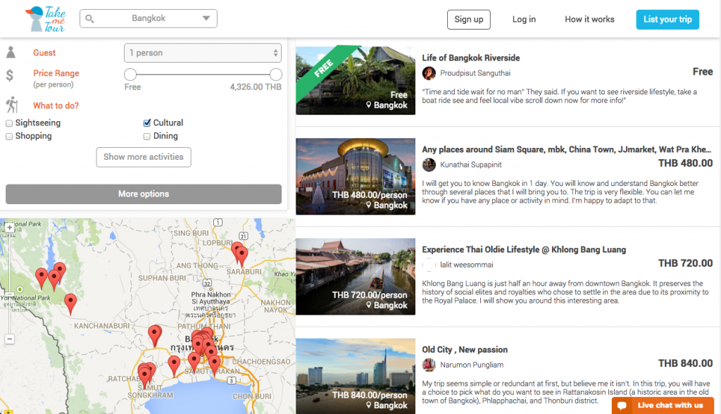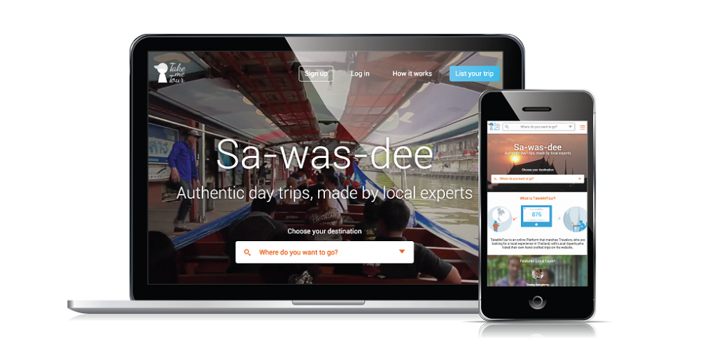 สำหรับ TakeMeTour เราเป็น Marketplace สำหรับ one day trip ที่สร้างโดยคนในพื้นที่ ซึ่งเราได้สร้าง Platform ในการสร้างทริป ตั้งราคาและพาเที่ยวได้ด้วยตนเอง เราเรียกคนเหล่านี้ว่า Local Expert ถ้าคุณรู้จักย่านที่คุณอยู่เป็นอย่างดี และมีไอเดียพาเที่ยวเจ๋งๆก็สามารถเข้ามาสร้างทริปกับ TakeMeTour ได้ฟรีครับ เพราะเราเชื่อว่า “ใครๆก็พาเที่ยวได้” ส่วนในด้านนักท่องเที่ยวต่างชาติก็จะเข้ามาเลือกทริปและจองออนไลน์ผ่านหน้าเว็บไซต์ได้เช่นเดียวกันครับ