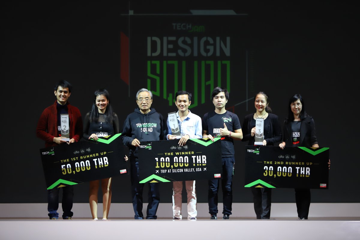 เริ่มที่ทีม TREXCODEJR ผู้ชนะ Design Squad กันบ้าง พวกเขาเล่าว่าเป็นโปรแกรมเมอร์อยู่ที่จังหวัดขอนแก่น พบว่าการเดินทางลงมาแข่งขันที่นี่เหมือนได้เปิดโลก พวกเขาได้เห็นไอเดียและวิธีออกแบบใหม่ๆ เยอะกว่าที่ขอนแก่นมาก นอกจากนี้ การแข่งขันยังทำให้พวกเขาได้ใช้ความสามารถเต็มที่ ได้แข่งกับตัวเอง ทะเลาะกับตัวเอง