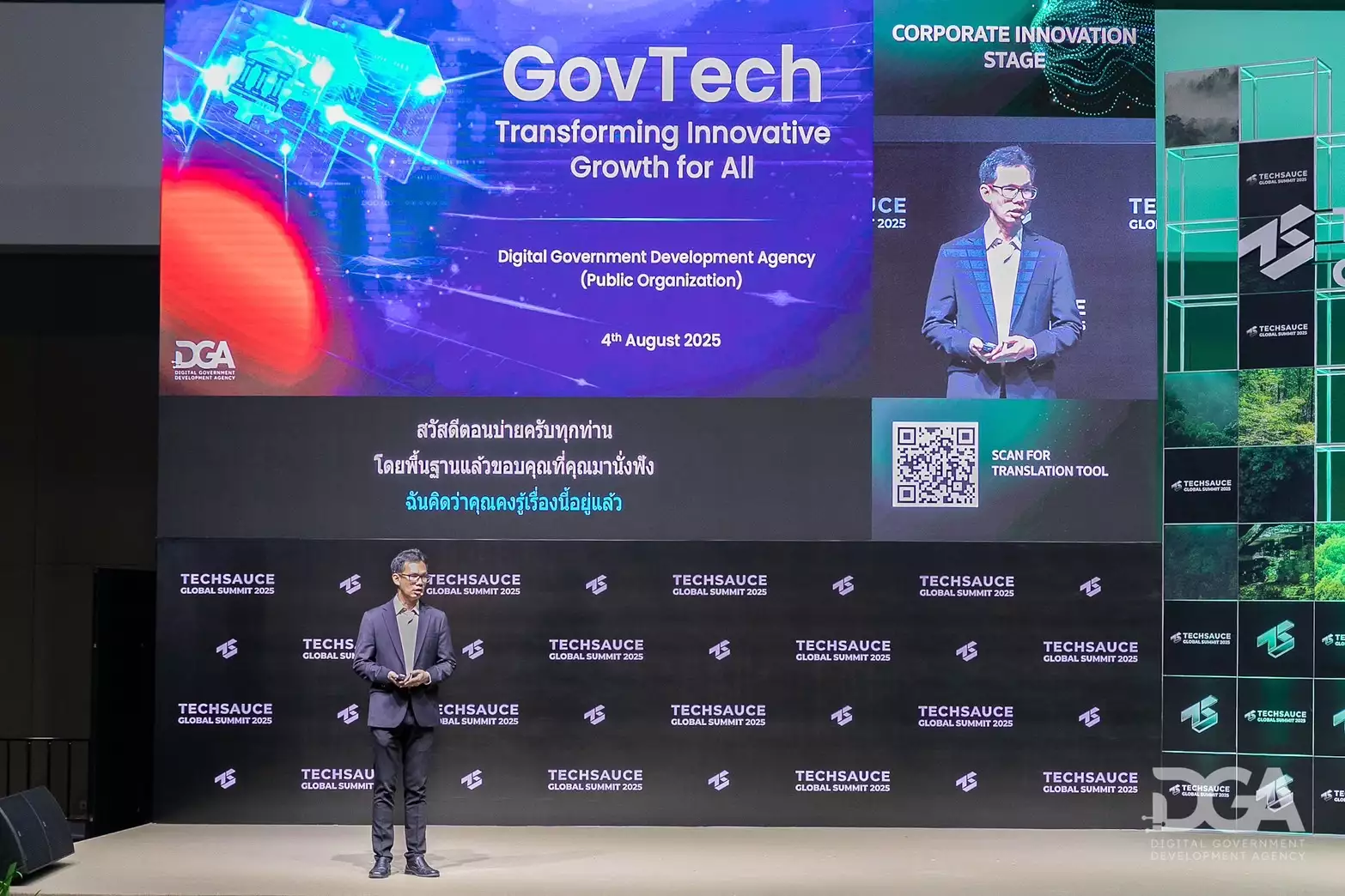 ท่ามกลางเวทีที่เต็มไปด้วยผู้นำเทคโนโลยีและธุรกิจจากทั่วโลก หนึ่งในองค์กรที่น่าจับตา คือ สำนักงานพัฒนารัฐบาลดิจิทัล (องค์การมหาชน) หรือ DGA ที่ปีนี้ไม่เพียงมาร่วมจัดบูธ แต่ยังส่งผู้บริหารระดับสูงขึ้นเวทีใหญ่ถึง 2 เวที เพื่อเล่าถึงเบื้องหลังการขับเคลื่อนรัฐบาลดิจิทัลที่คนไทยจะได้ใช้จริงในชีวิตประจำวัน