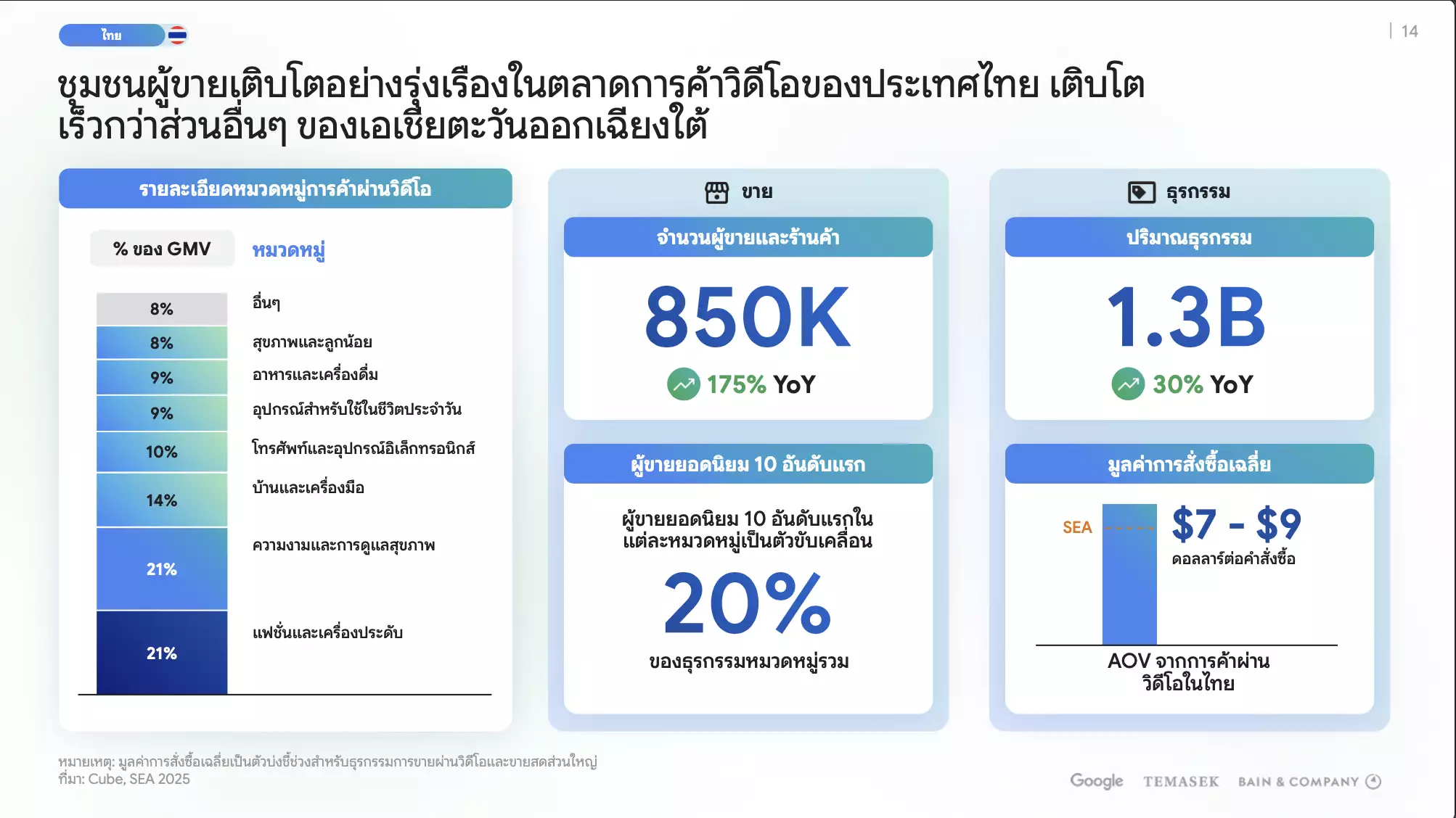 รายงานระบุว่า อีคอมเมิร์ซ คือเทรนด์ที่มาแรงในตอนนี้ โดยคาดว่าจะทำเงินได้มากถึง 3.3 หมื่นล้านดอลลาร์สหรัฐในปี 2026 แต่สิ่งที่น่าสนใจกว่านั้นคือ ‘Video Commerce’ หรือการขายของผ่านวิดีโอและไลฟ์สดที่กำลังได้รับความนิยมในไทย