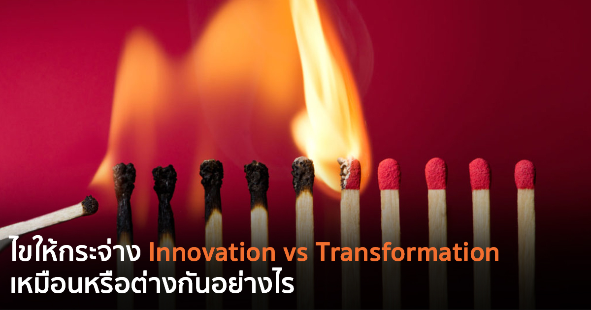 Innovation กับ Transformation ต่างกันอย่างไร? เรามักจะได้ยินคำว่า นวัตกรรม (Innovation) กับคำว่า การเปลี่ยนแปลง (Transformation) มาเคียงคู่กันเสมอ อาจจะฟังดูคล้ายกัน แต่จริงๆ แล้ว ในบริบทของโลกปัจจุบัน สองคำนี้มีความต่างกันอยู่พอสมควร