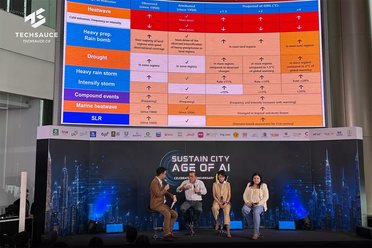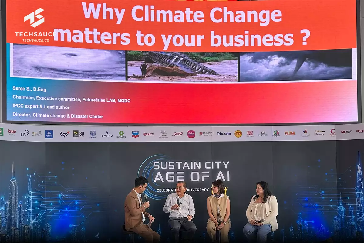 สรุปเนื้อหาจากงานสัมมนา ‘Sustain City Age of AI พลิกโฉมเมืองใหม่ สร้างทุกสิ่งให้ยั่งยืน’ ที่จัดขึ้นเพื่อฉลองครบรอบ 5 ปีสำนักข่าว TODAY ในหัวข้อ ‘Green AI Solutions : AI รักษ์โลก Solution รักษ์คน' ที่มี 3 ผู้ร่วมเสวนาที่มีความเชี่ยวชาญด้านสภาพอากาศ การเกษตร และภาคธุรกิจ มาพูดคุยว่า นวัตกรรม AI ใช้แก้ปัญหาสิ่งแวดล้อม รับมือความเสี่ยงจากสภาพภูมิอากาศแปรปรวน (Climate Risk) และช่วยลดความเสี่ยงให้ภาคธุรกิจได้อย่างไร