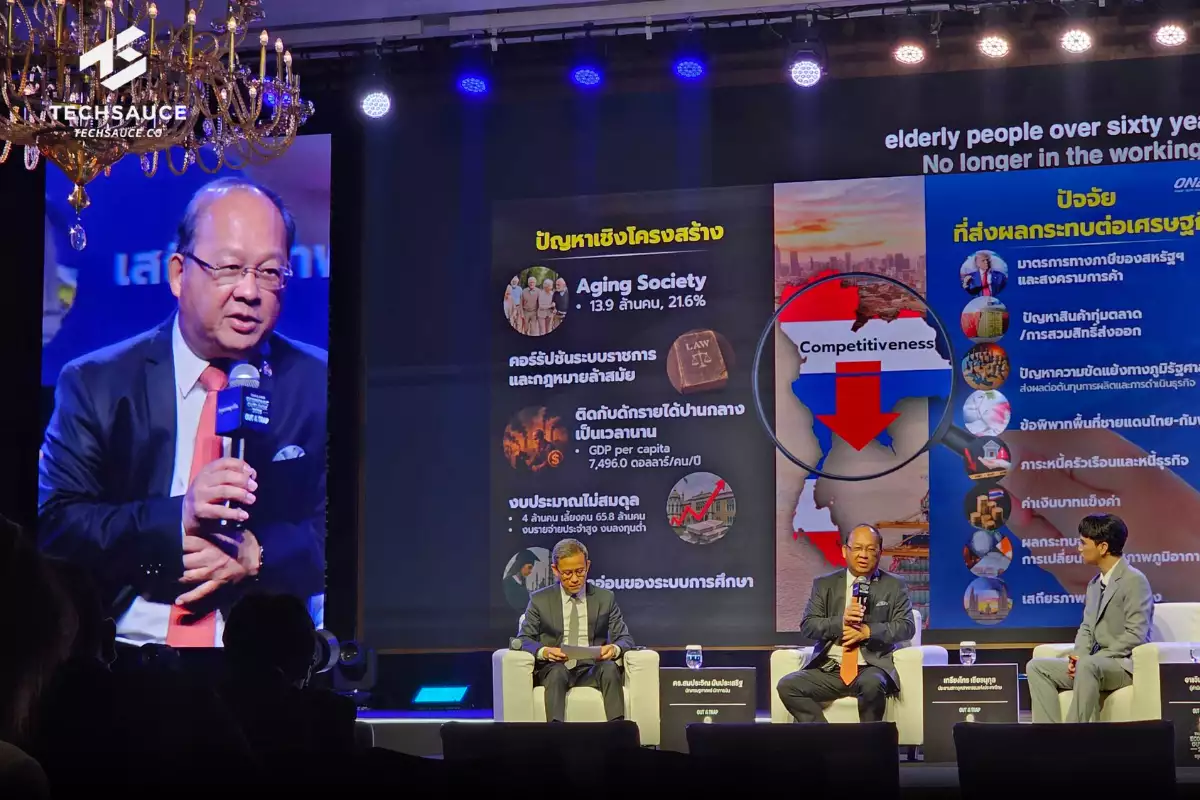 ด้านคุณเกรียงไกร ได้ฉายภาพปัญหาที่รุมเร้าประเทศไทยให้ชัดเจนยิ่งขึ้น โดยชี้ว่า GDP ไทยโตเฉลี่ยเพียง 2% ในช่วง 10 ปีที่ผ่านมา ซึ่งต่ำกว่าศักยภาพอย่างมาก ปัญหาเหล่านี้มาจากทั้งปัจจัยภายนอกและปัญหาเชิงโครงสร้างที่ฝังรากลึกภายในประเทศ