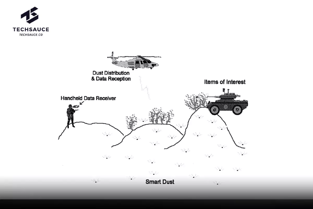 จุดเริ่มต้นของ Smart Dust มาจากการเป็นข้อเสนอโครงการวิจัยให้กับ DARPA (หน่วยงานวิจัยเทคโนโลยีขั้นสูงของกองทัพสหรัฐฯ ผู้อยู่เบื้องหลังอินเทอร์เน็ตและ GPS) ซึ่งสะท้อนให้เห็นถึงเป้าหมายทางการทหารและการสอดแนมอย่างชัดเจน