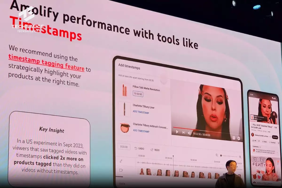 จากการทดลองในสหรัฐอเมริกาเมื่อเดือนกันยายน 2023 พบว่า วิดีโอที่มีการแท็กสินค้าด้วย Timestamps มียอดคลิกบนสินค้าสูงกว่าวิดีโอที่ไม่มีการแท็กถึง 2 เท่า